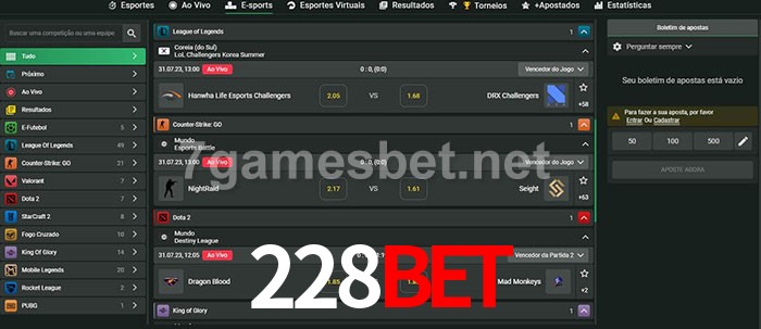 A aposta 228Bet oferece aos jogadores a experiência mais conveniente de apostas em eSports!